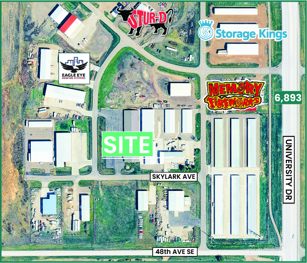 Industrial/flex building located along Skylark Avenue in north Bismarck, offering a combination of warehouse and office space with an included fenced yard. The property benefits from strong visibility off University Drive and is surrounded by a mix of industrial users, storage facilities, and service-oriented businesses.
